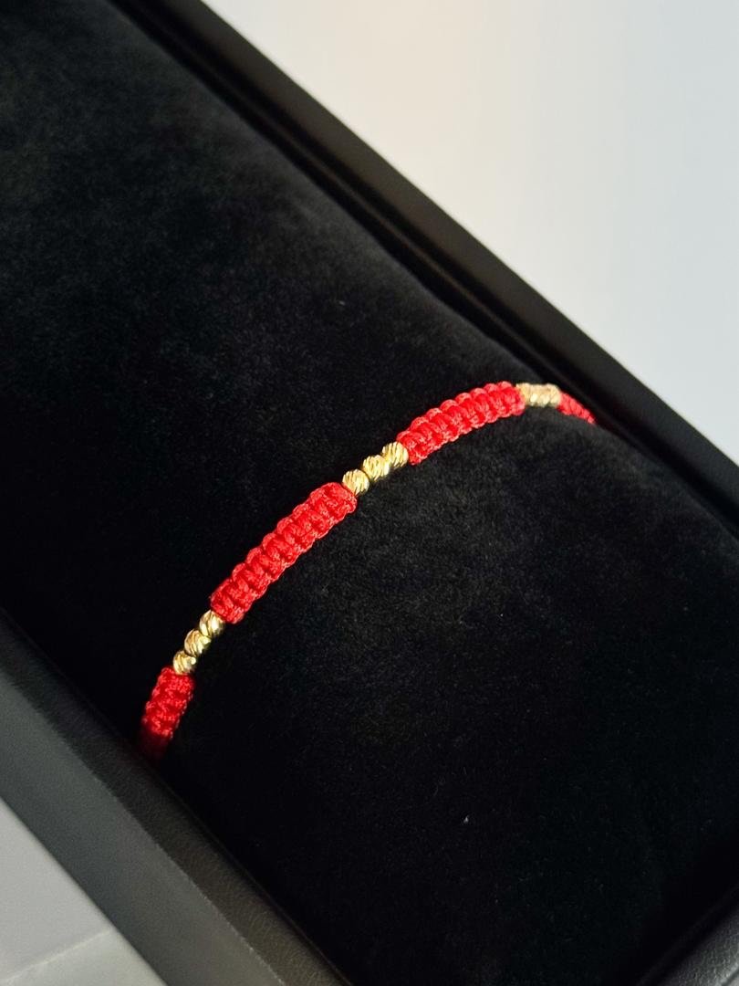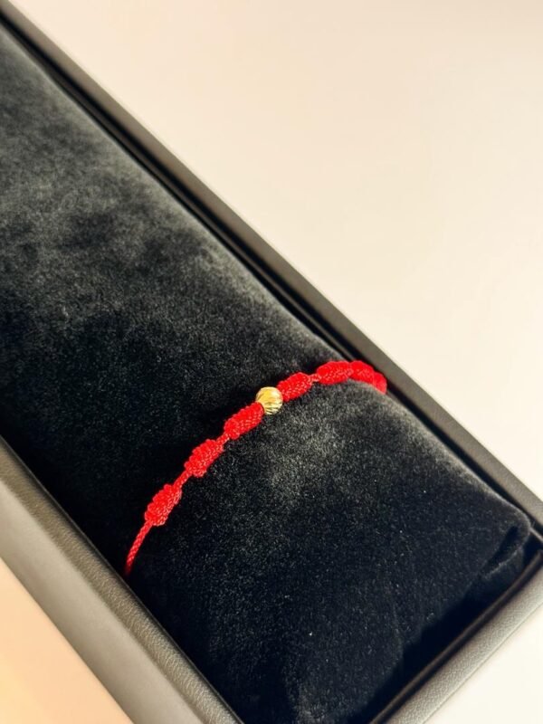 Pulsera tejida en hilo chino rojo con detalles en balines diamantados #2